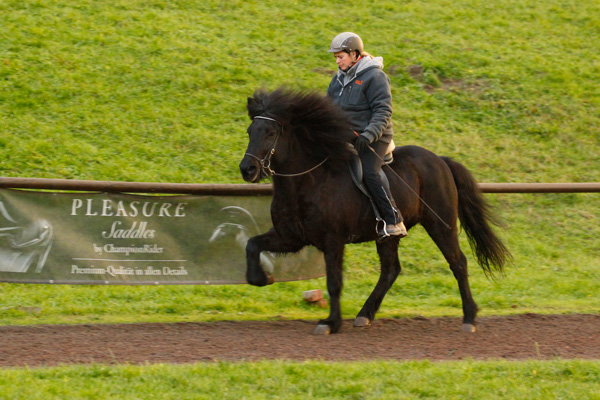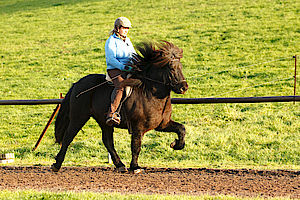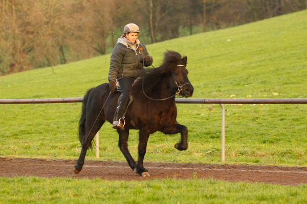 Bislang waren Sabrina und Vaska in der Töltprüfung T3 am Start. Rosl plädiert nun dafür, dass Sabrina unsere Top-Tölterin in der kommenden Saison in der T4 vorstellt. Der erste ganz spontane Test heute auf der Ovalbahn macht es deutlich: Tölten ohne Zügel ist für die Beiden kein Problem :-)