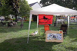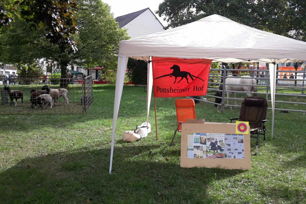Das diesjährige Biosphärenfest findet heute in Ormesheim statt und neben vielen Ständen mit Produkten der Region, findet sich auch der Ponsheimer Hof mit einem Infozelt auf dem Ausstellungsgelände. Natürlich zieht weniger der Stand als vielmehr die Schäfchen und die Ponys die Besucher an; Snotra, Hönn, Stella und List ermöglichen dem Publikum den hautnahen Kontakt mit den Islandpferden vom Pons.