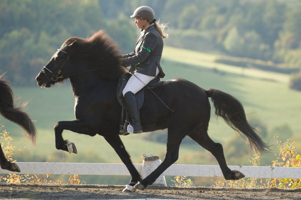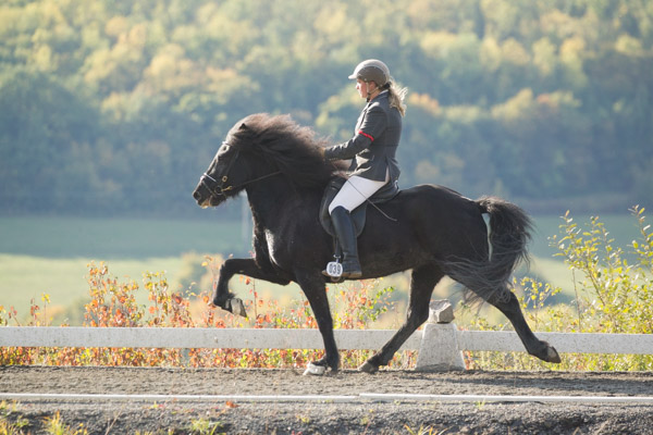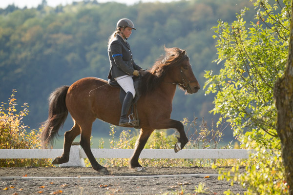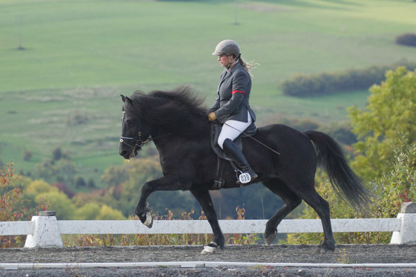 Traditionell veranstaltet die Familie Becker Anfang Oktober ein Erntedankturnier, das für viele den Saisonabschluss bildet. Für uns ist der Weg nicht weit und wir waren mit einigen unserer Pferde am Start. Sabrina hat ihre Routiniers Vaska und Kimni genannt und beschlossen, ihre eigene Nachwuchsstute Hrönn vom Kramersbruch erstmals zu starten. Da sie ihre zwei Weiteren Profis Kvika und Slápi üblicherweise in den gleichen Prüfungen wie Vaska und Kimni starten würde, haben wir diesemal entschieden, dass Rosl Kvika und Slápi reiten würde. Für den Ponsheimer Hof natürlich in sofern eine gute Entscheidung, weil dadurch in den Finals alle Pferde wieder starten konnten und keines zurückgezogen werden musste weil ein Reiter mehrere Pferde qualifiziert hat, aber ja nur eines im Finale reiten kann. Nur Slápi musste auf sein Viergangfinale verzichten, weil sl Vaska und Kvika auf Platz eins und zwei lagen und er auf Platz drei. Vermutlich war er darüber aber nicht traurig...
