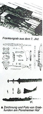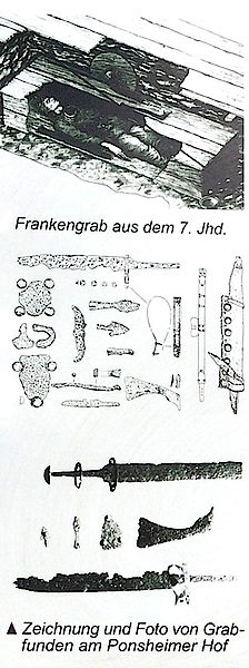Schon die Franken haben sich auf dem Gebiet des heutigen Ponsheimer Hofes wohl gefühlt und sich im 7. Jahrhundert an dieser wassernahen und dennoch hochwassersicheren Stelle niedergelassen. Das konnte nachgewiesen werden, als beim Pflügen nahe dem Ponsheimer Hof ein "Sax" und eine "Spatha" (ein- und zweischneidige Schwerter) gefunden wurden, was 1962 zu einer archäologischen Ausgrabung und der Entdeckung von sieben merowingerzeitlichen Gräbern führte.