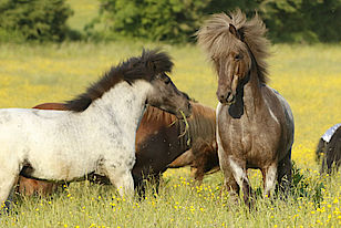 Die Weiden sind naturbelassen, riesengroß, in hügeligem Gelände und mitten in der Natur - ein Traum für jedes Islandpferd!