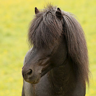 Er ist ein eleganter Rappfarbwechsler mit besonders gutem Tölt und Pass.